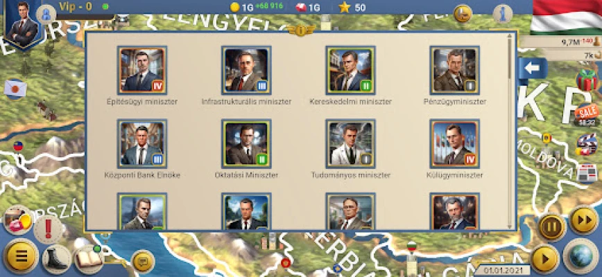 A belső stabilitás megteremtése kulcsfontosságú. Gondoskodj polgáraid jólétéről gyárak, farmok és energialétesítmények építésével, valamint a kulturális élet fellendítésével – szervezz nagyszabású eseményeket a sporttól a művészetig. Finanszírozz és fejlessz kulcsfontosságú minisztériumokat, mint az egészségügy, oktatás, infrastruktúra és védelem, hogy javítsd az életminőséget és vonzd a turisták millióit. Építsd fel a világ csodáit, mint a Szabadság-szobor vagy az Eiffel-torony, hogy országa a globális figyelem középpontjába kerüljön. Ezzel párhuzamosan kezeld az állam pénzügyeit: szedd az adókat, vegyél fel és adj kölcsön, kereskedj árukkal, és kutass új gazdasági modelleket a fenntartható növekedés érdekében.