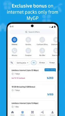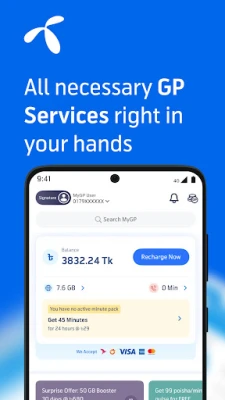 MyGP a Grameenphone önkiszolgáló alkalmazása, mellyel egyszerűen kezelheti távközlési igényeit. Könnyedén igénybe vehet internet- vagy percajánlatokat. Felejtse el a bonyolult kódokat és a hosszú várakozási időt az ügyfélszolgálaton. MyGP-vel minden a keze ügyében van.