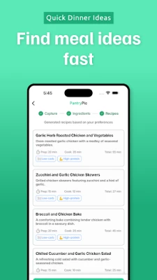 A részletes, lépésről lépésre követhető utasításoknak köszönhetően még a kezdő szakácsok is magabiztosan alkothatnak, a tapasztaltak pedig új inspirációt találnak. Többé nem kell órákig gondolkodnia a vacsorán; a **Pantry Pic** villámgyorsan prezentálja a tökéletes étkezési ötleteket, így percek alatt dönthet. Ideális választás az elfoglalt szakembereknek, költségtudatos diákoknak, a mindennapi zsonglőrködő családoknak, vagy bárkinek, aki okosabban és egészségesebben szeretne főzni, optimalizálva a konyhai feladatokat és maximálisan kihasználva a rendelkezésre álló hozzávalókat.