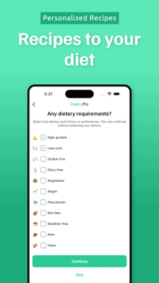 A Pantry Pic forradalmasítja a főzést! Készíts egy fotót hűtőd vagy kamrád tartalmáról, és fejlett mesterséges intelligenciánk azonnal felismeri az összetevőket. Fedezz fel ízletes, étrendi igényeidre szabott recepteket. Spórolj időt, csökkentsd az ételpazarlást, és fedezd fel újra a főzés örömét a Pantry Pic segítségével.